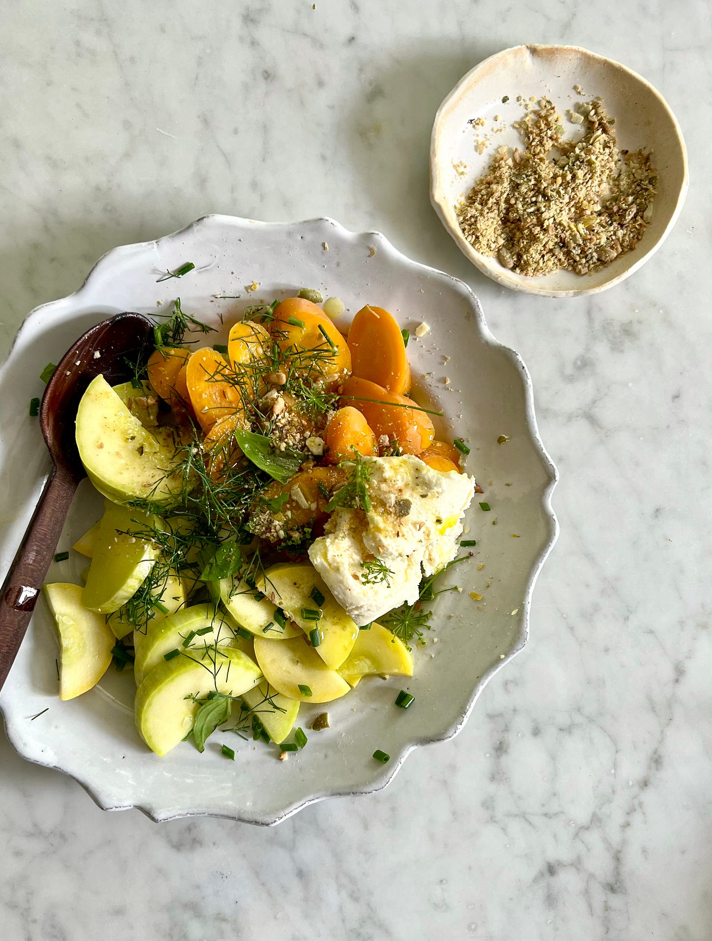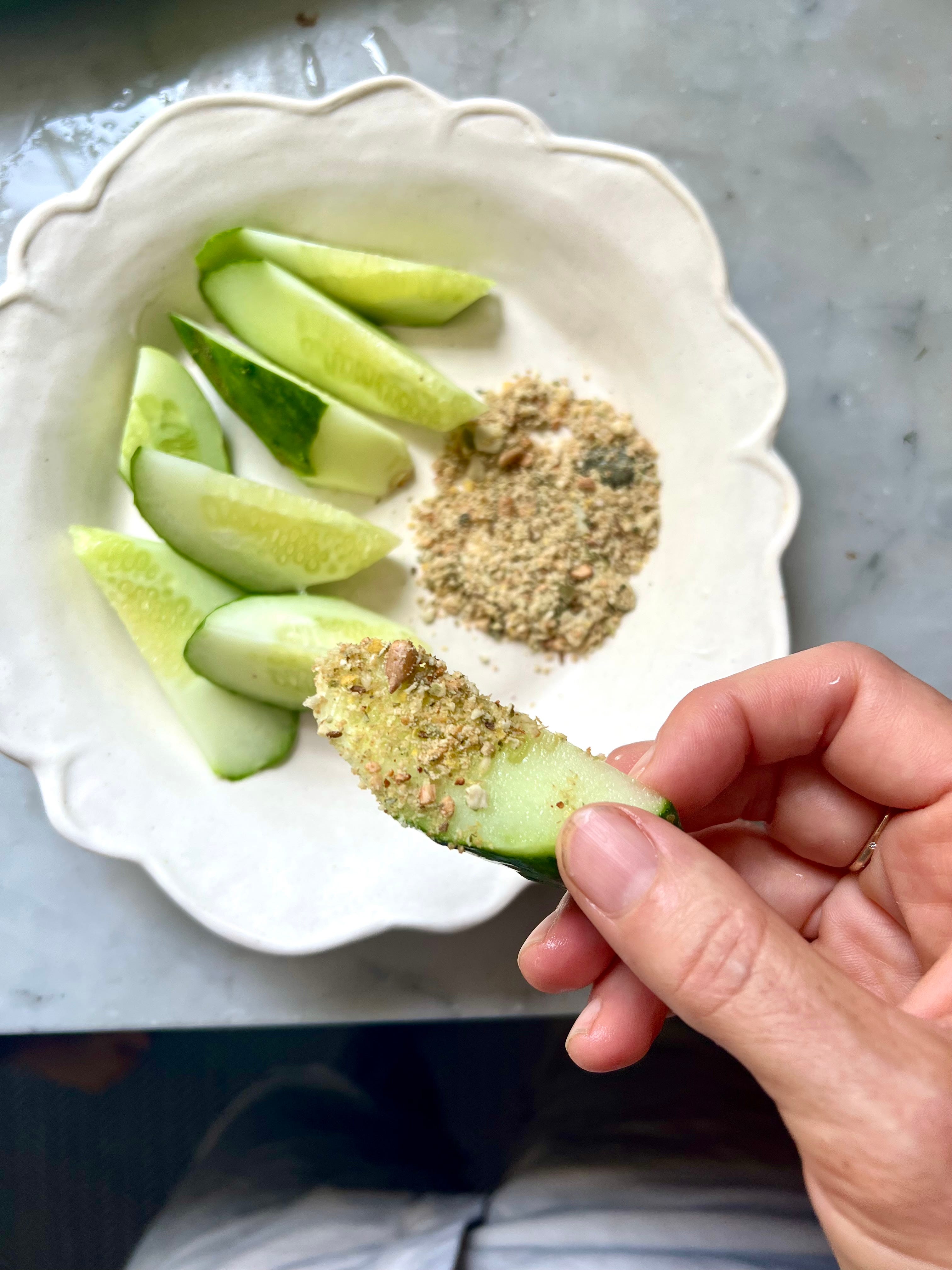 This morning, I was dreaming about the multitude of things that can be made from the increasing abundance of vegetables we’re receiving from our CSA share. The first tomatoes were included last week and since June there’s been baby beets, all varieties of lettuces, cucumbers and tender, buttery zucchinis. We’ve also been pulling baby carrots from our own raised beds whilst watering, giving them a quick rinse and eating them immediately. I love thinking about the big effect these tiny moments might have in informing the growing taste buds of the kiddos, not to mention the mighty nutrition the freshly plucked orange root contains. This is the reason you’ll find me carrying around raw vegetables like Japanese turnips, fennel with fronds (Ezra likes the stalks only) and whole cukes to offer as snacks wherever the summer days take us. Now you may be expecting a recipe utilizing all these gorgeous peak-season gems. Instead what I’m offering here contains zero fresh produce. It’s a recipe you can make ahead and sprinkle everywhere to elevate anything and everything. You can dip raw vegetables right into it, dust it over simple steamed vegetables, scatter it over a salad, rice or even pasta or noodles. Oh, and if you make a simple humus without any spices (so the children will eat it) you can jazz up your own portion with a pinch, so everyone is happy.